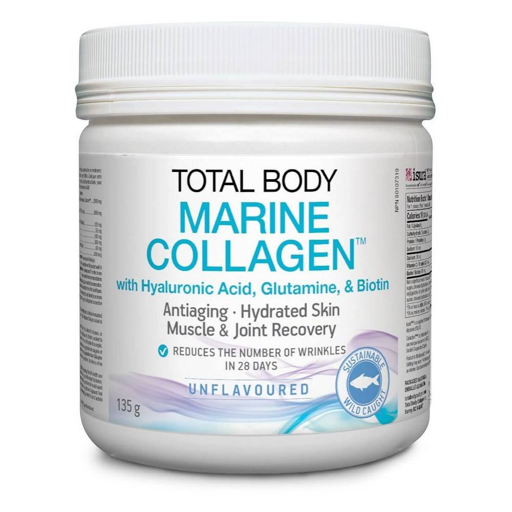 • Natural Factors Total Body Marin Collagen Fish collagen powder is a product that contains fish collagen powder enriched with hyaluronic acid, glutamine and biotin. This product is designed to support joint, connective tissue and skin health. The collagen contained in it is the most loved protein in the human body and plays an important role in the structural integrity of the body.