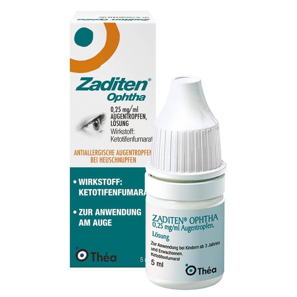 If you need to use other eye drops in addition to ZADITEN ofta, both drugs should be used at least 5 minutes apart. If you are pregnant, think you may be pregnant or are planning to have a baby, consult your doctor or pharmacist before using this medicine. ZADITEN ofta eye drops can be used during breastfeeding. Contact lenses should be removed before using this medicine and not reinserted for 15 minutes.
