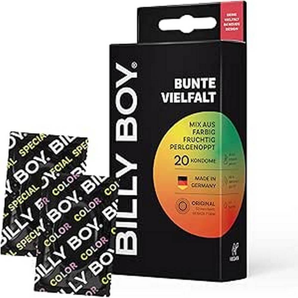 - Tu mezcla: con la mezcla de 20 colores de Billy Boy, te amas de forma variada, colorida y emocionante: más diversión durante el sexo con preservativos con protuberancias y de colores y preservativos con aromas afrutados.